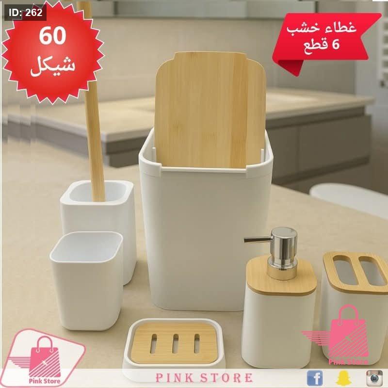 طقم إكسسوارات حمام 6 قطع مع خشب بامبو